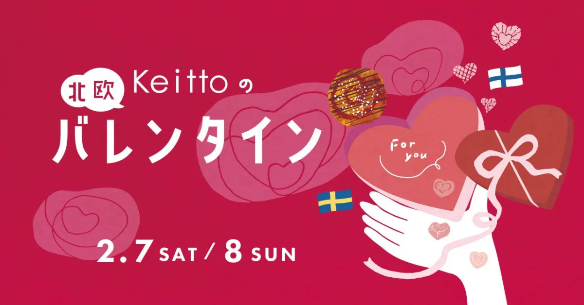 2月7日(土)と8日(日)に開催される「Keittoの北欧バレンタイン」。株式会社ノースオブジェクトが運営するこのイベントは、子育てママとファミリーが集う街、Keittoの特別企画です。今年のバレンタインデーのテーマは、スウェーデンの「Alla hjärtans dag(みんなのハートの日)」で、愛する人々に感謝の気持ちを表現する素晴らしい機会に。恋人はもちろんのこと、家族や友人、自分自身への思いを大切にする文化が魅力です。