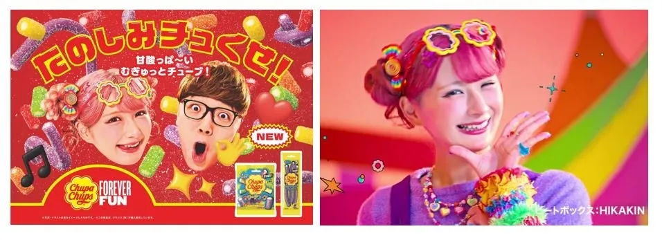 本日、世界中で人気を誇る「チュッパチャプス」が新しいグミを発売することを発表しました。「チュッパチャプスサワーチューブグミ」と「サワーチューブロンググミ」の第2弾で、思わず笑顔になってしまう新CMも公開されました。特に、TikTokでおなじみの仲良しコンビ、しなこさんとHIKAKINさんがビートボックスでコラボレーションし、楽しい世界感を表現しています。