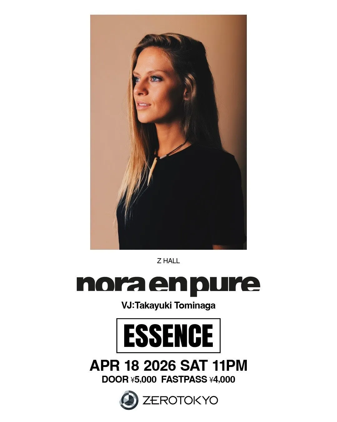Nora En Pureは、2026年4月18日(土)に東京のZEROTOKYOで行われる「ESSENCE」に出演します。開場は午後11時からで、入場料金は通常5,000円、優先入場が可能なファストパスチケットは4,000円となっています。公式HPからチケットを購入することができるので、早めにチェックしてみてください。