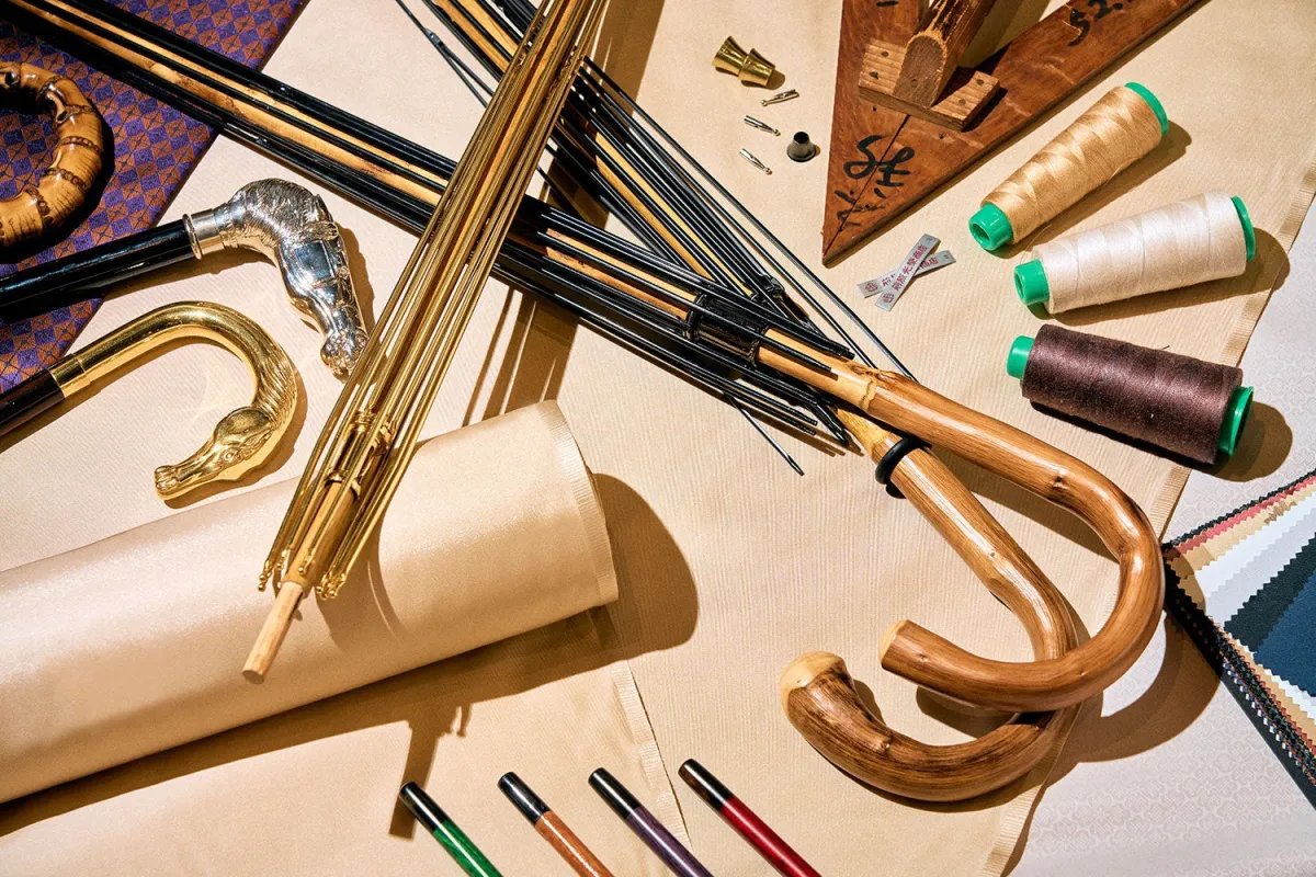 傘の全パーツにゴールドメッキ加工を施した、豪華な仕様の傘も登場します。現在では新たに製造できない貴重なパーツを使用しており、特別感が漂います。