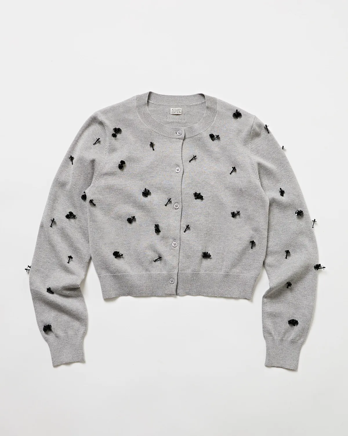 ここでバーニーズニューヨーク限定のアイテムとして登場するのは、ビジュー付きの華やかなカーディガン。グレーとブラックのシックな配色は、どんなコーディネートにも合わせやすく、主役として活躍すること間違いなし。背中に施されたブランドロゴもさりげなく、おしゃれなポイントです。