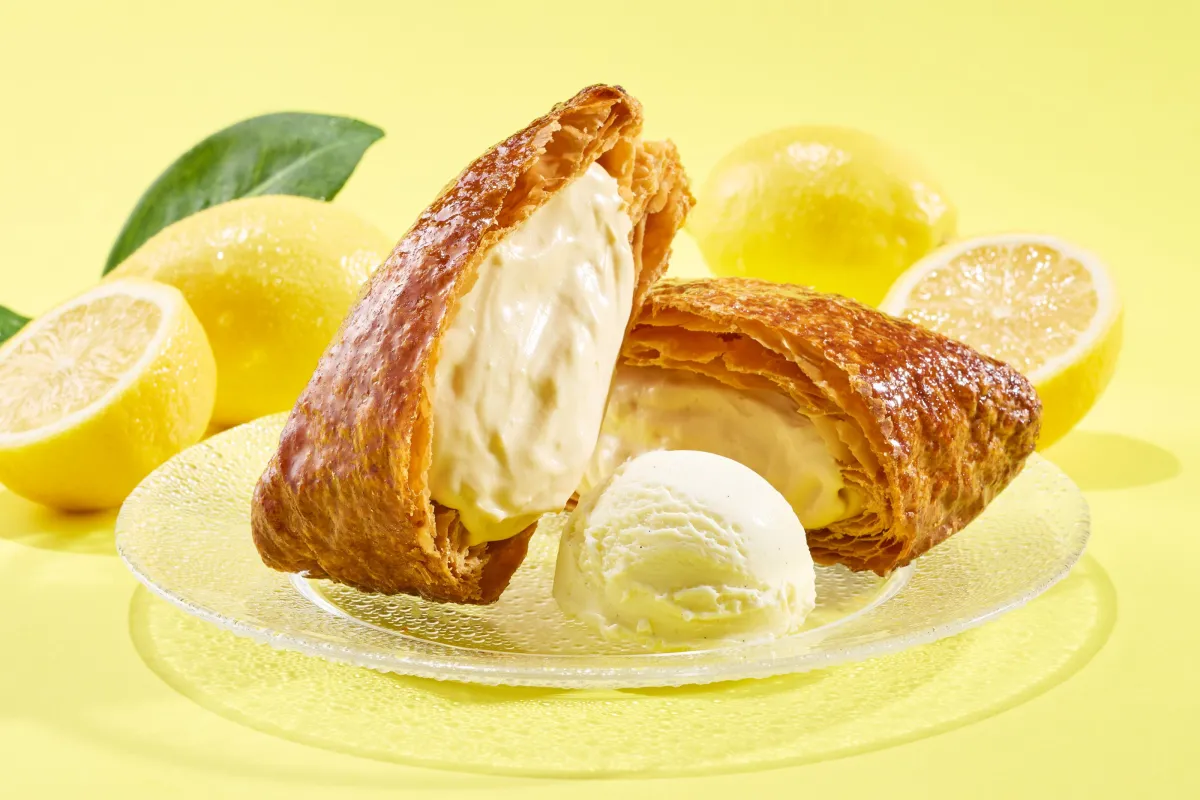 『フランセパニエレモンキャラメル』は、幾重にも重なった層を持つパイ生地の中に、北海道産生乳を使ったクリームと、瀬戸内産のレモンを取り入れたレモンクリームが詰め込まれています。レモンの爽やかさと、隠し味のキャラメルが加わることで、一口ごとに味わいの深さを感じることができます。