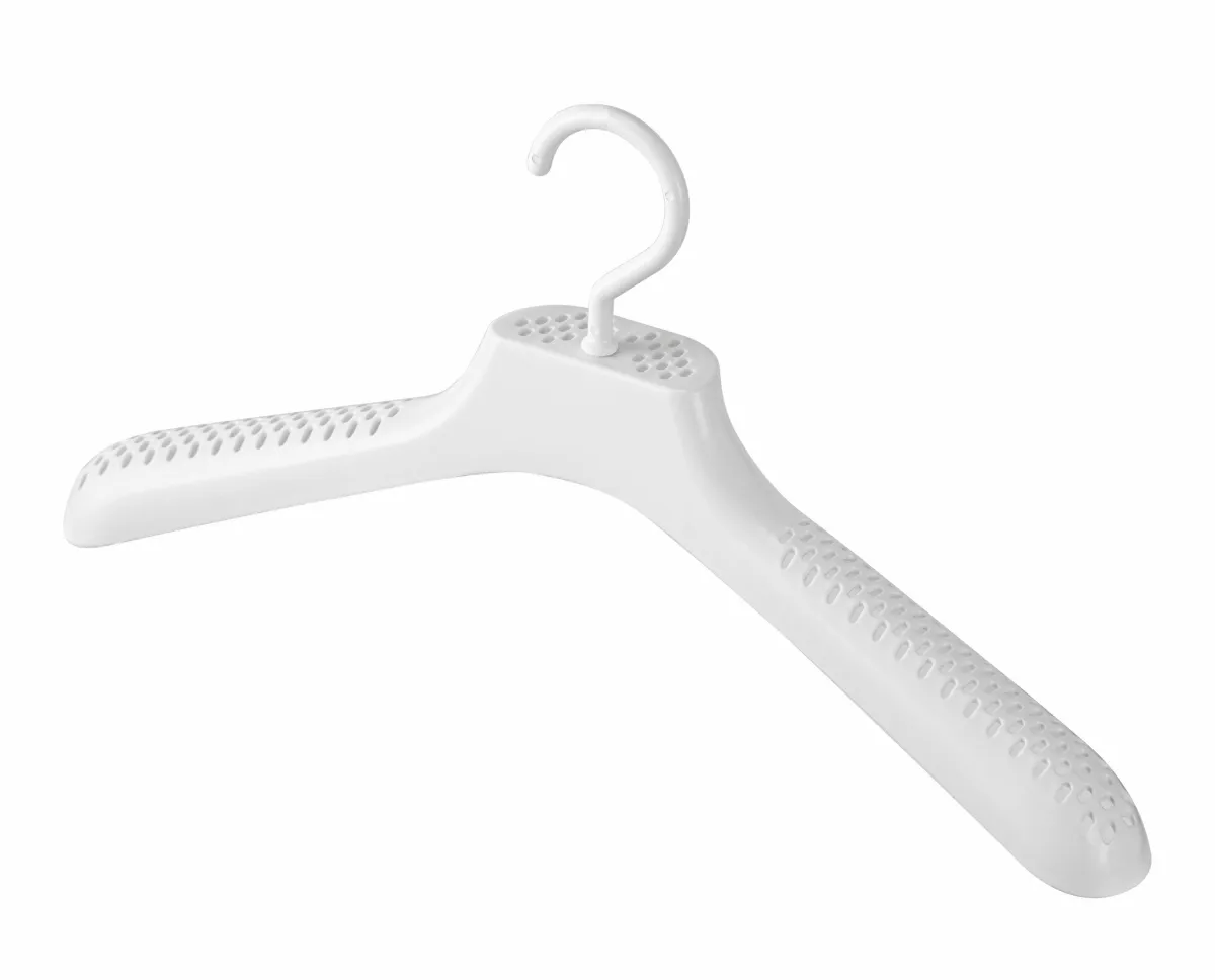 デザインだけでなく、機能性も考慮されたこのハンガーは、幅広の本体と風通しの良い穴あき構造により、洗濯物が素早く乾きます。また、ポリプロピレン素材を使用しているため、軽量で持ち運びが簡単。日常の洗濯作業がより手軽になります。