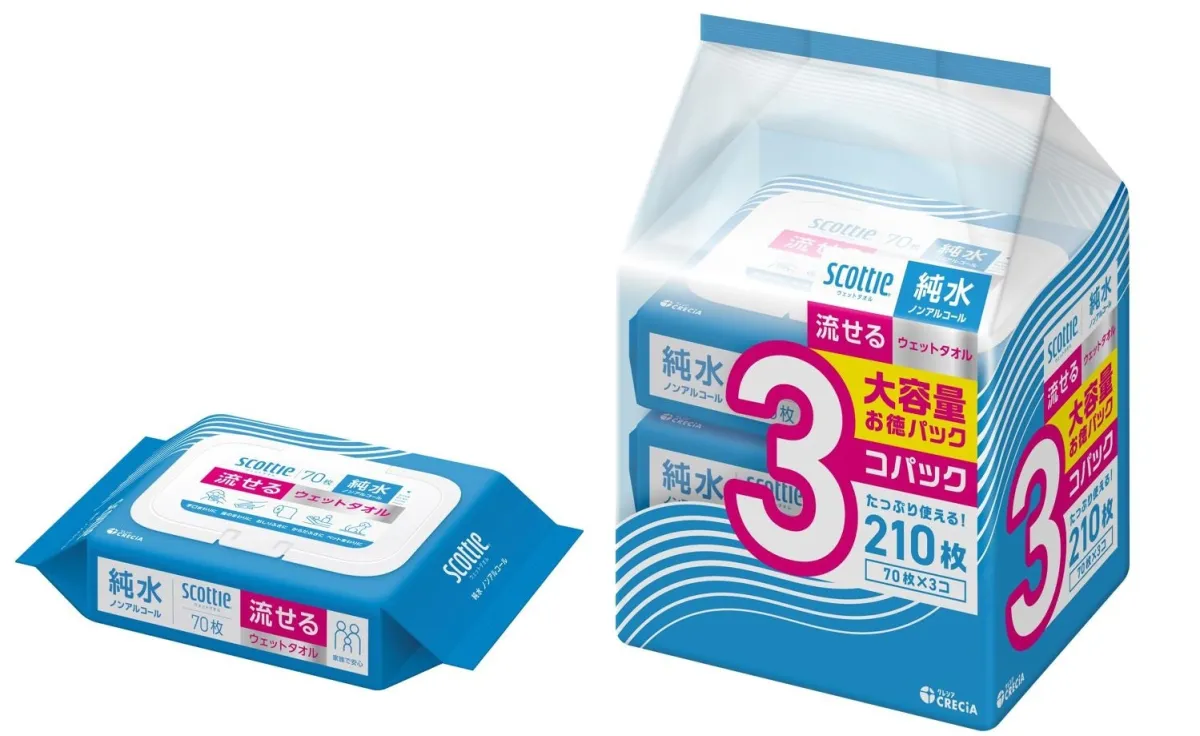まとめ買いをする方にも朗報!『流せるウェットタオル 純水ノンアルコール』は、70枚入りを3個セットにしたお得な3コパックも販売されます。家族全員で使うのはもちろん、外出時にもバッグに入れておくと安心ですね。
