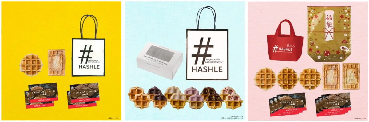 「スマイルセット」と「福わっふる袋」の2種類が登場し、どちらも一味違った内容となっています。ハッシュルのワッフルで、笑顔あふれる有意義な時間を過ごしていただけることを願い、特別に用意されています。