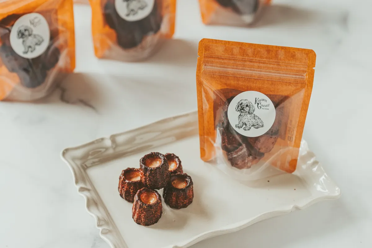 KURAMAE CANNELÉから新たに登場した「愛犬用クラマエカヌレ」で、大切な愛犬と特別なおやつタイムを楽しんでみてください。味わい深いカヌレとともに心温まるひと時を、愛犬とともに過ごすことで、より一層充実した家族のひと時が得られるはずです。是非、この機会をお見逃しなく!