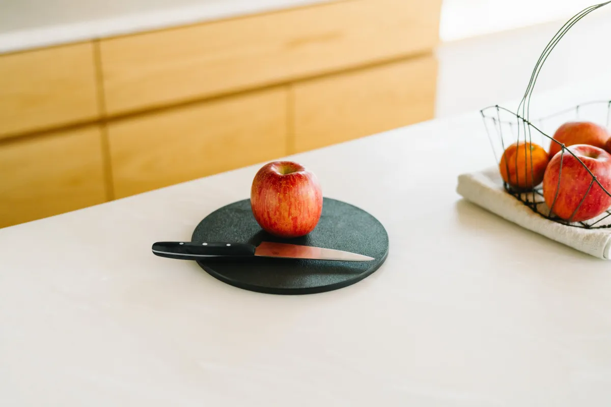 持ち手は指にフィットするカーブが施され、ナチュラルとブラックの2色から選べます。本通し構造の握りやすい形状により、安定感もあり、キッチンにしっくり馴染みます。生活の一部として、美しい存在感を放つ包丁です。
