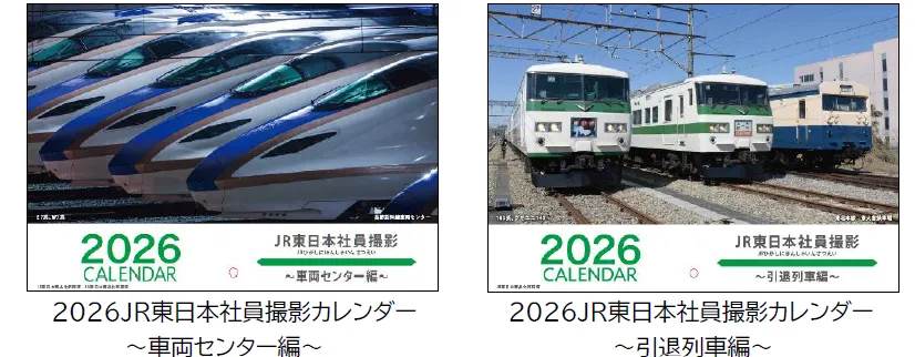 2026年のカレンダーは二つのテーマで構成されています。「車両センター編」と「引退列車編」の2種類です。車両センター編では、E7系やW7系の車両が詳しく紹介され、その独特なアングルからの写真が楽しめます。引退列車編では、懐かしい185系の優雅な姿が表紙を飾り、現役列車や引退した列車の美しい瞬間が収められています。