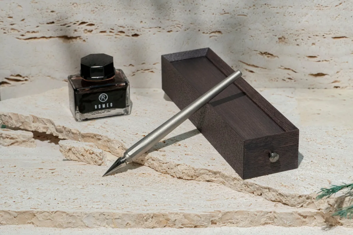 筆記具の歴史は古く、羽根ペンにまで遡ります。ROMEOでは、その伝統的な筆記道具を今の時代に再構築した形です。手を書きするという行為は、デジタル化された生活の合間に心を落ち着け、自分自身と向き合うひとときを与えてくれます。忙しい日常の中で、一度立ち止まってペンを持ち、思いを紙に綴る。そういった瞬間は、心に豊かなインスピレーションを与えてくれるでしょう。