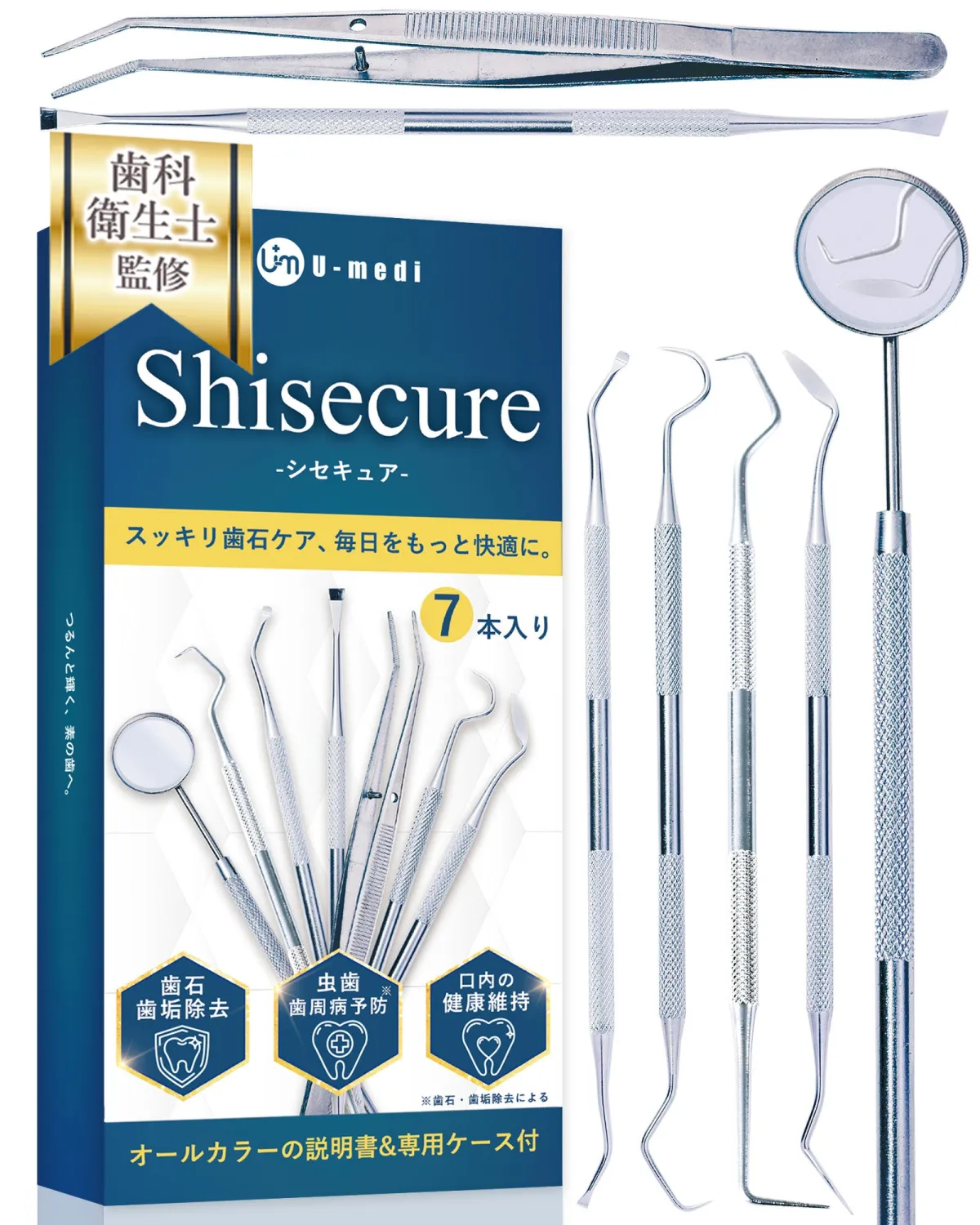 - - 内容:スケーラー5種、デンタルミラー、ピンセット、専用ケース、取扱説明書