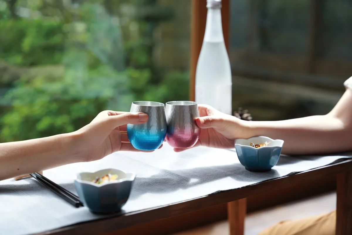 この「ちちり」は、金属加工が盛んな燕市にある老舗の「新光堂」によって生産されています。新光堂の職人たちは、一つ一つの器に丁寧に手作業で鎚目を施しており、その技術はまさに職人技の結晶です。さらに、器は錫でコーティングされているため、金属特有のにおいを抑えており、お酒の味わいをまろやかに楽しむことができるんです。