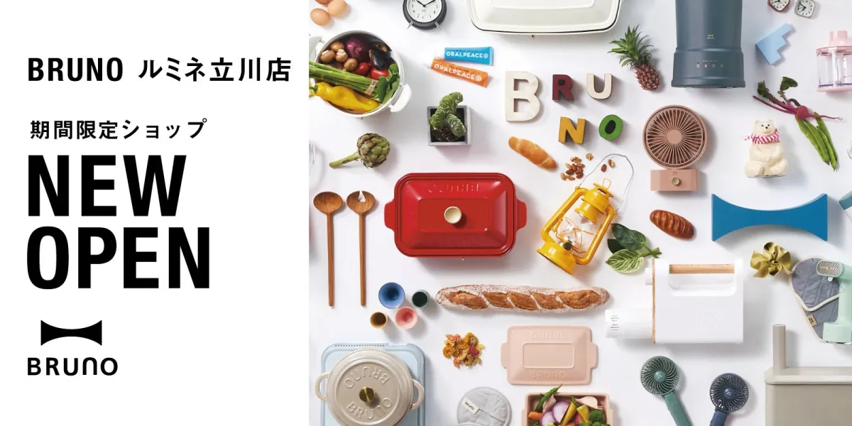 2025年8月22日(金曜日)、人気のライフスタイルブランド「BRUNO(ブルーノ)」が、ルミネ立川店に期間限定ショップをオープンします。このショップでは、BRUNOが手掛けるインテリア雑貨やライフスタイル商品が豊富に取り揃えられ、おしゃれなアイテムであなたの日常を素敵に彩ります。
