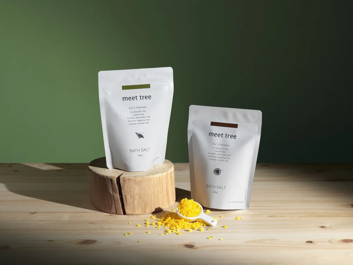 meet treeのバスソルトは、なんとシリーズ累計で11万個以上を製造したという実績を持つ人気商品。これまで多くの方々から「毎日使用するための大きなサイズが欲しい」という要望が寄せられていました。この声に応え、大容量のバスソルトパックを開発しました。