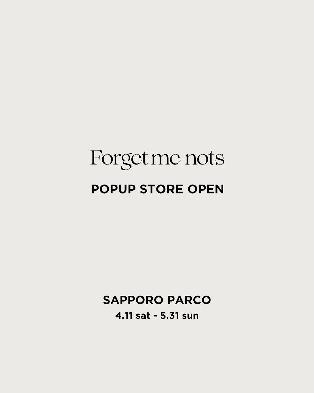 新たなファッションのトレンドを発信するウィメンズオンリーのセレクトショップ「Forget-me-nots」が、2026年4月11日から5月31日までの期間、札幌PARCOにてPOPUP STOREを開催します。この機会に、ショップのコンセプトである“Street is beautiful, Sneaker is elegant”を体感できるアイテムが揃います。