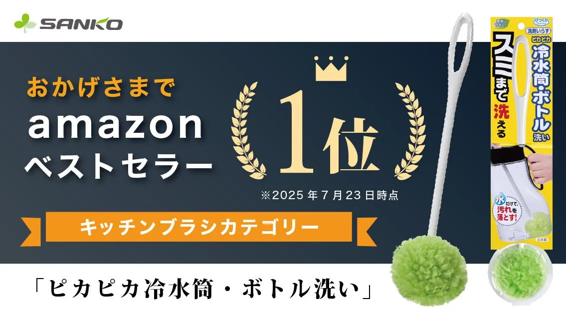 和歌山県海南市に本社を構える株式会社サンコーの「ピカピカ冷水筒・ボトル洗い」が、2025年3月から6月にかけて、Amazonのキッチンブラシカテゴリーでベストセラー1位を4ヶ月連続で獲得しました。この商品は、特に夏が近づくと多くの人々が水分補給の重要性を再認識する中で、愛用されています。