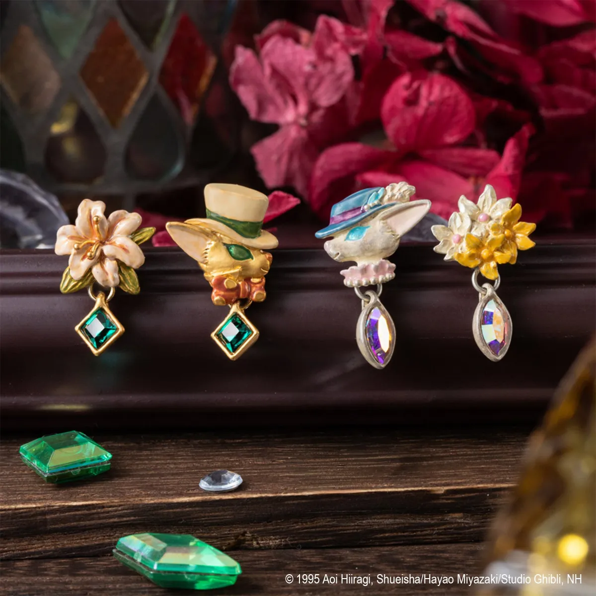 今回のコラボレーションでは、映画『耳をすませば』に登場するキャラクター、バロンとルイーゼをデザインしたピアスセットが登場。バロンは地球屋の猫の人形として、またルイーゼはその恋人として、ストーリーに深みを与えている存在です。このアイテムは、手作りならではのあたたかさが感じられる「Palnart Poc」が手がけており、ひとつひとつ色彩豊かに仕上げられています。