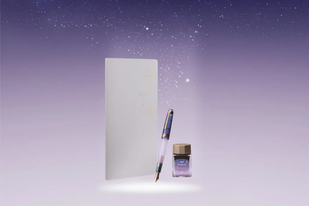セットには、インクとして新調色された淡いパープルカラーの限定「Yumeyoi」が含まれています。ノートの表紙にも月と星の箔押しが施されており、見た目にも美しい仕上がり。書く楽しさを引き立ててくれるこれらのアイテムは、贈り物としても、自分へのご褒美としても選びたくなる魅力を持っています。