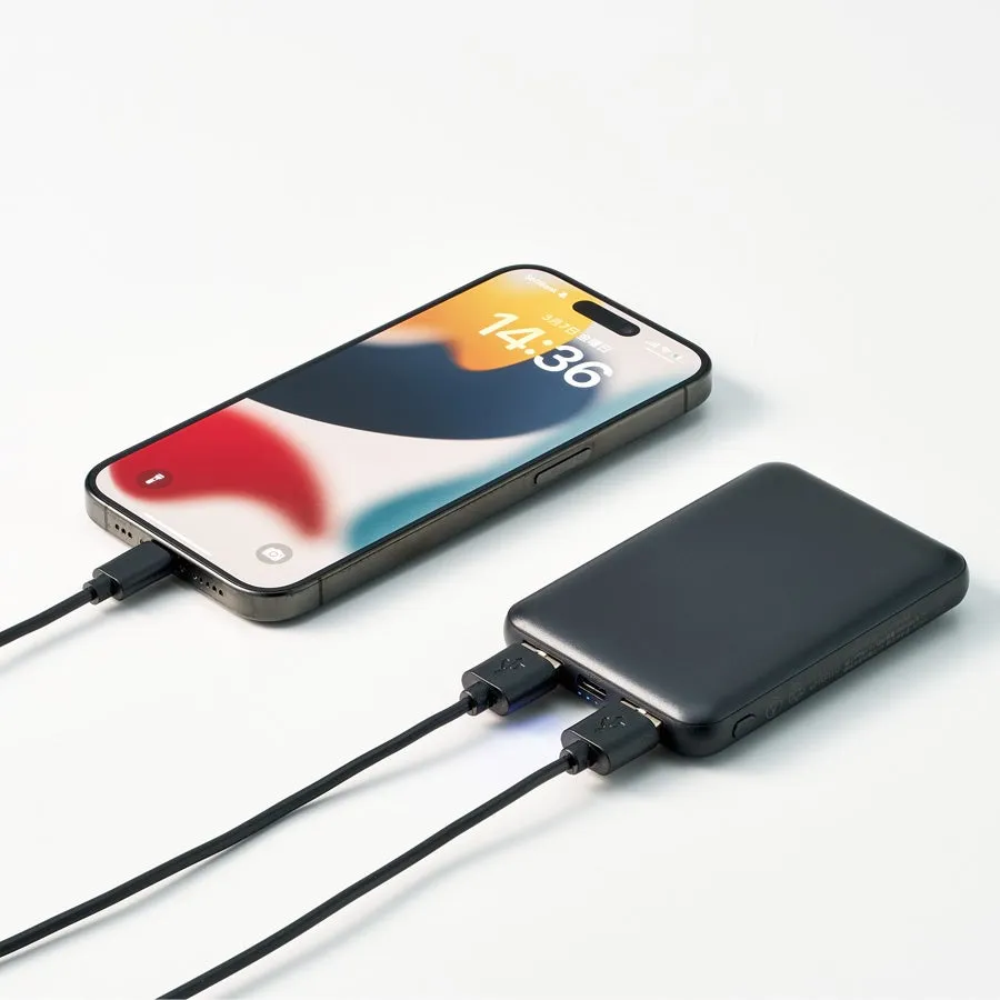 さらに、このチャージャーはUSBポートを2口備えているため、スマートフォンやイヤホン、その他のデバイスを2台同時に充電することが可能です。友達と一緒に外出する際でも、両者の充電をサポートできるのは嬉しいポイントですね。