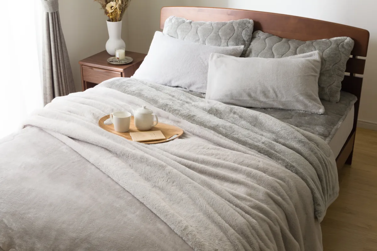 エアロゲルは軽量でありながら高い断熱性を持ち、寝具内の熱を逃しづらくします。また、毛先に練り込まれたグラフェンが増量されており、さらに遠赤外線効果もプラス。ムレにくい中わたの採用によって、快適な眠りを実現します。