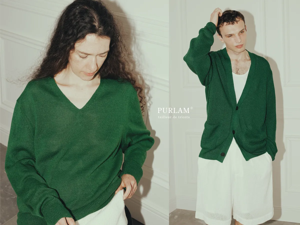 「PURLAM」は、「着用者を美しく見せる」ことを命題にしたニットウェアブランドです。テーラリングに熟練したパタンナーの手による精巧なデザインは、創業70年以上の信頼できるニットファクトリーの技術を活かしており、素材選定から構造設計に至るまで一貫した追求がなされています。