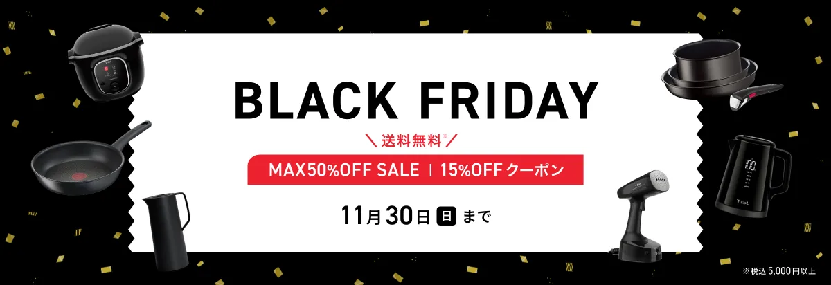一般にブラックフライデーは、様々な店舗で大規模なセールが行われるため、多くの人々が注目しますが、特にティファールのセールは見逃せません。今年のセールでは、家庭の料理をワンランクアップさせるためのアイテムが豊富に揃うため、ぜひご自宅用やプレゼントとしてお買い求めください。