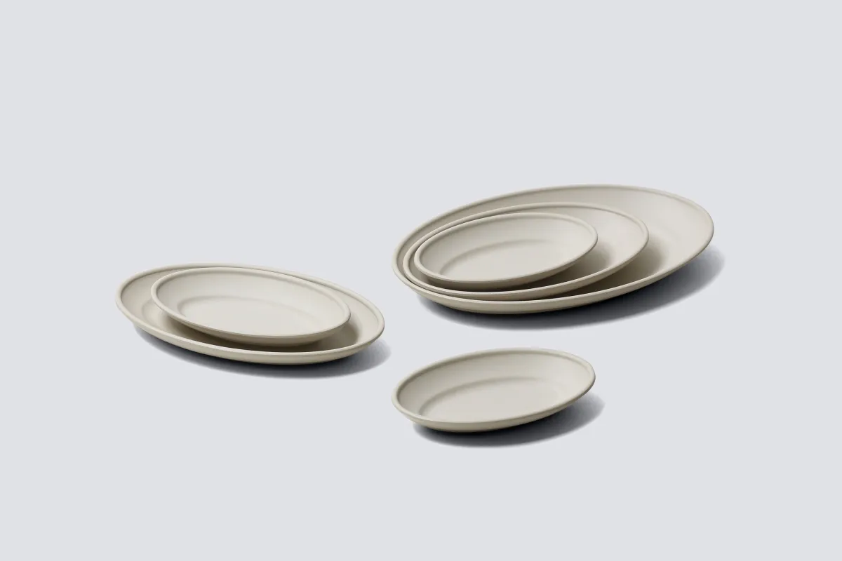 このプレートは、開発にあたって特別な素材「b fiber®」を採用しています。これは、メラミンに50%の竹を配合した環境に優しい素材で、従来のパルプを原料とするメラミン製品に比べて、CO₂の吸収を助ける効果があります。成長の早い竹を使用することで、森林の保護にも寄与しています。