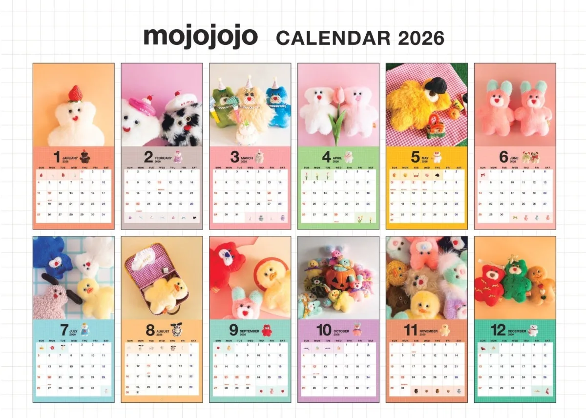 2025年8月29日から、全国の書店や雑貨店で新たに発売される「mojojojoカレンダー2026」。このカレンダーは、人気のぬいぐるみ・雑貨ブランド「mojojojo」とのコラボレーションによって生まれた初のカレンダー商品です。