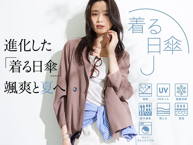 「着る日傘」シリーズは、紫外線や赤外線をしっかり遮蔽してくれる遮熱性とUVケア機能を搭載。これに加え、今作には透湿、吸汗速乾、接触冷感といった夏に嬉しい機能が追加されています。まるで日傘を身にまとっているかのような安心感を得られるこのアイテムは、これからの季節にぴったりです。