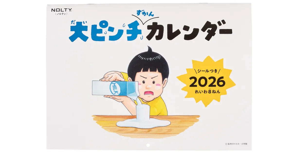 「大ピンチずかんカレンダー」は、絵本作家である鈴木のりたけ氏の人気絵本「大ピンチずかん」と「NOLTY」がコラボレーションした商品です。このカレンダーは、子どもたちが直面しがちな“大ピンチ”をユーモアを交えて描いており、シリーズ累計270万部を超える大ヒット商品となっています。