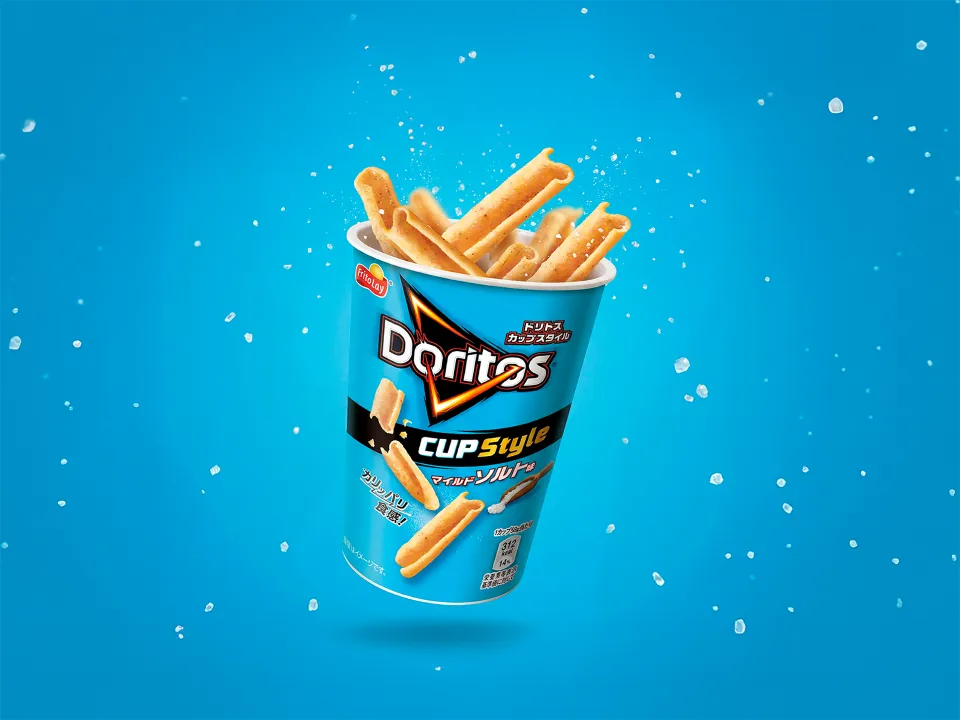 『ドリトス CUP Style マイルドソルト味』は、S字型の立体形状によって、ここまでの食感を実現しました。「カリッと」と「パリッと」の二重の食感を楽しめるので、食べても食べても飽きることがありません。コーンの自然な甘みと旨みが引き立つマイルドな塩味が絶妙で、シンプルな味わいながらもリピート間違いなしの美味しさを実現しています。
