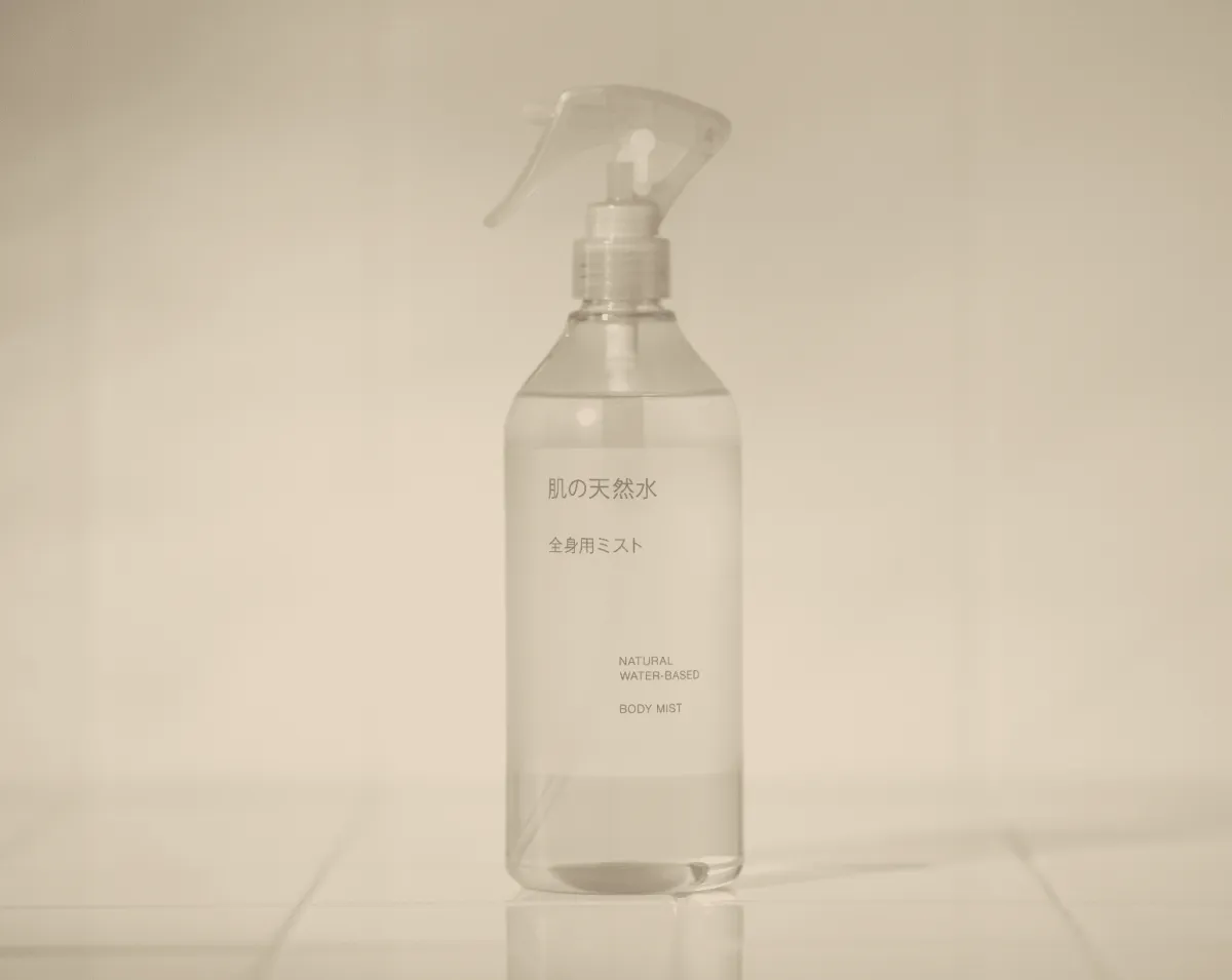 「肌の天然水 全身用ミスト」は、無印良品のスキンケア商品で多く使われている釜石の天然水を主成分にしています。この天然水は、何十年もかけてフィルターを通して浄化されたもので、特に柔らかく、「ほんのり甘い」という特徴があります。そのため、飲用してもおいしい水としても知られています。このような高品質な水を使用することで、お肌にも良い効果をもたらすことを意識して開発されたのが本商品です。