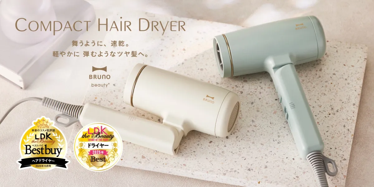 この度、BRUNOのコンパクトヘアドライヤーが2025年の『LDK the Beauty』のコスメ・オブ・ザ・イヤーを受賞しました。特に注目すべきは、4060個もの製品の中から選ばれたこのドライヤーが、ヘアドライヤー部門で受賞したことです。約300gという軽さを誇りながら、大風量を実現し、忙しい毎日をサポートするアイテムになっています。